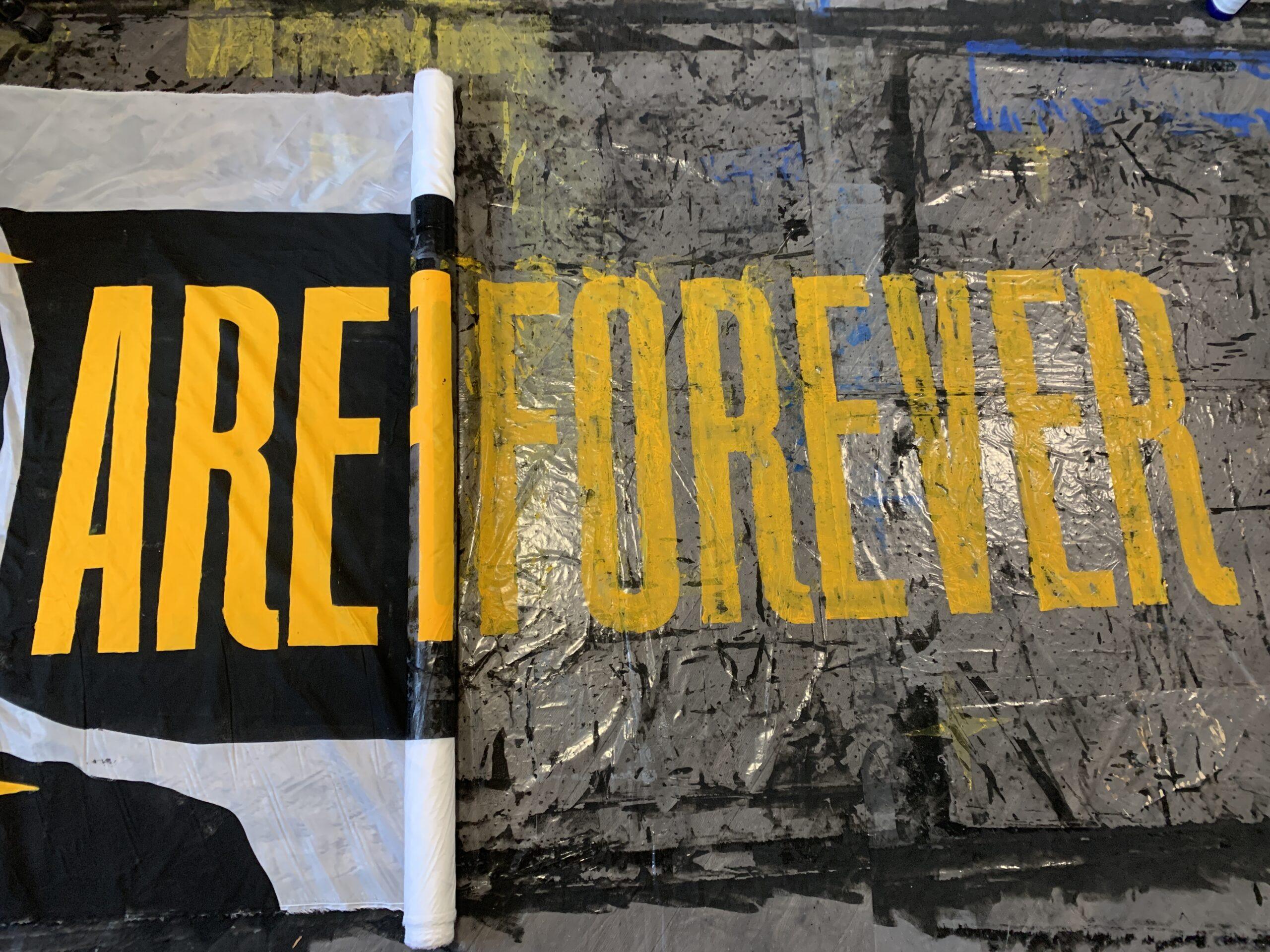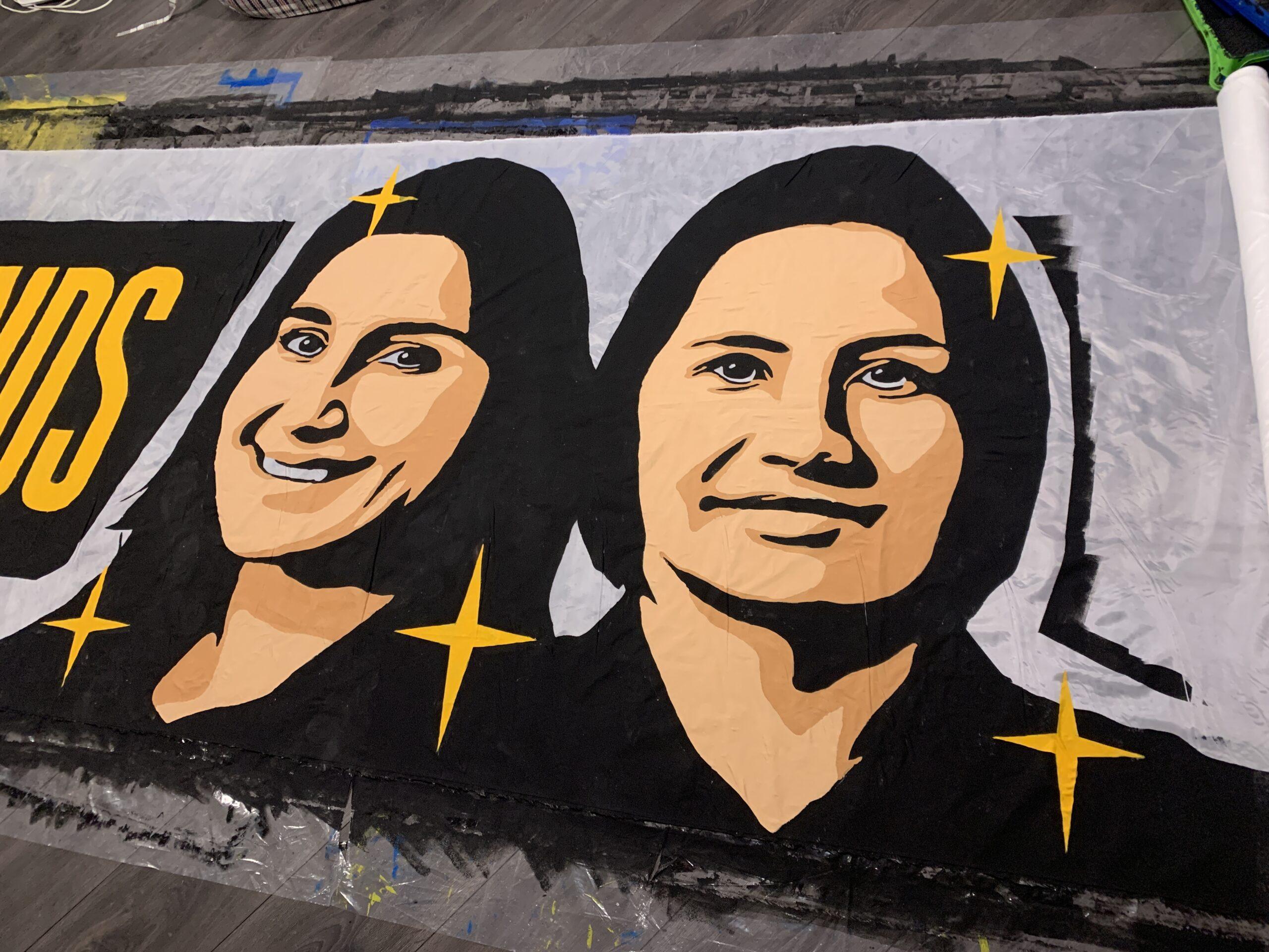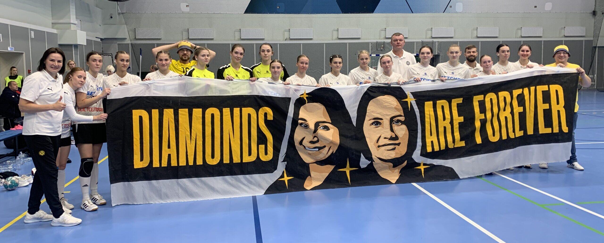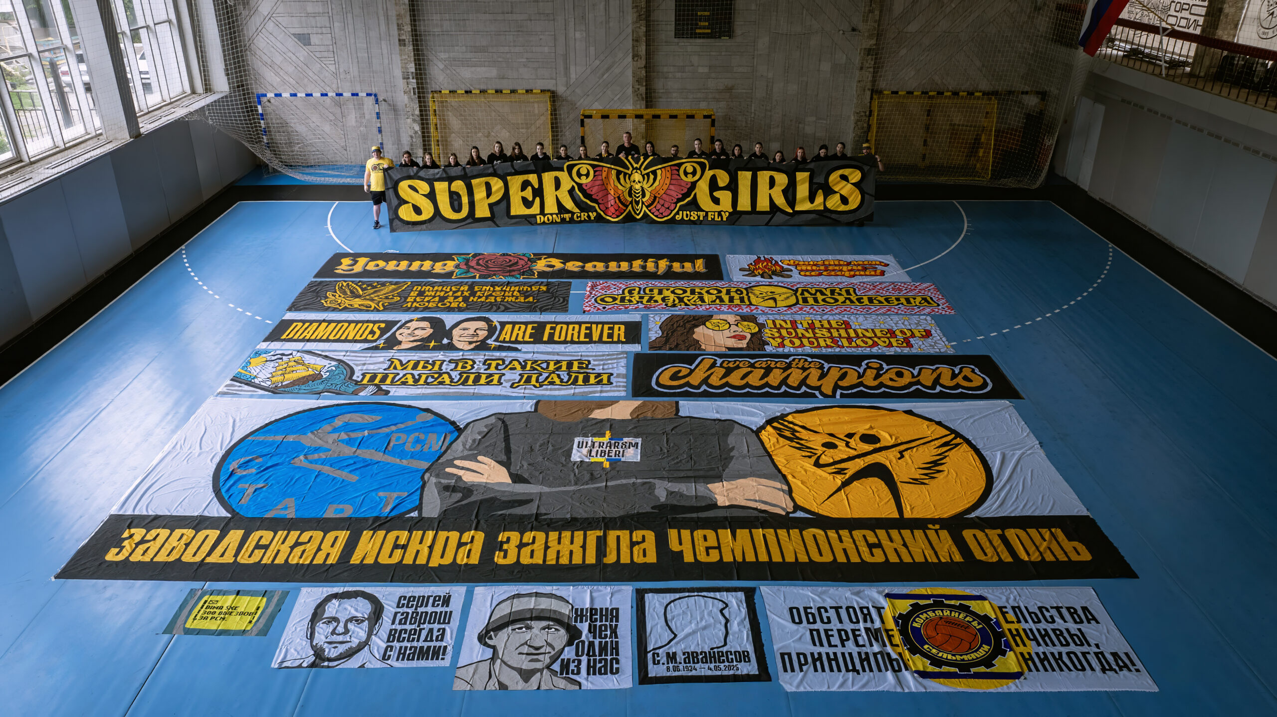Собственно, это та самая спонтанность собственной персоной. Пока у основы ГК была пауза на сборную, изучили календарь, и оказалось, что можно оформить тройник Нижний Новгород (ФК) – Москва (ГК-2). Тем более, что на двойку на выезда никто не ездит (кроме родителей, конечно). Ехать с пустыми руками как-то не хотелось, поэтому сделано было следующее. Изображены Майя Андреевна и Галина Батразовна — наши легенды и «бриллианты». И эти «бриллианты» точно навсегда.
